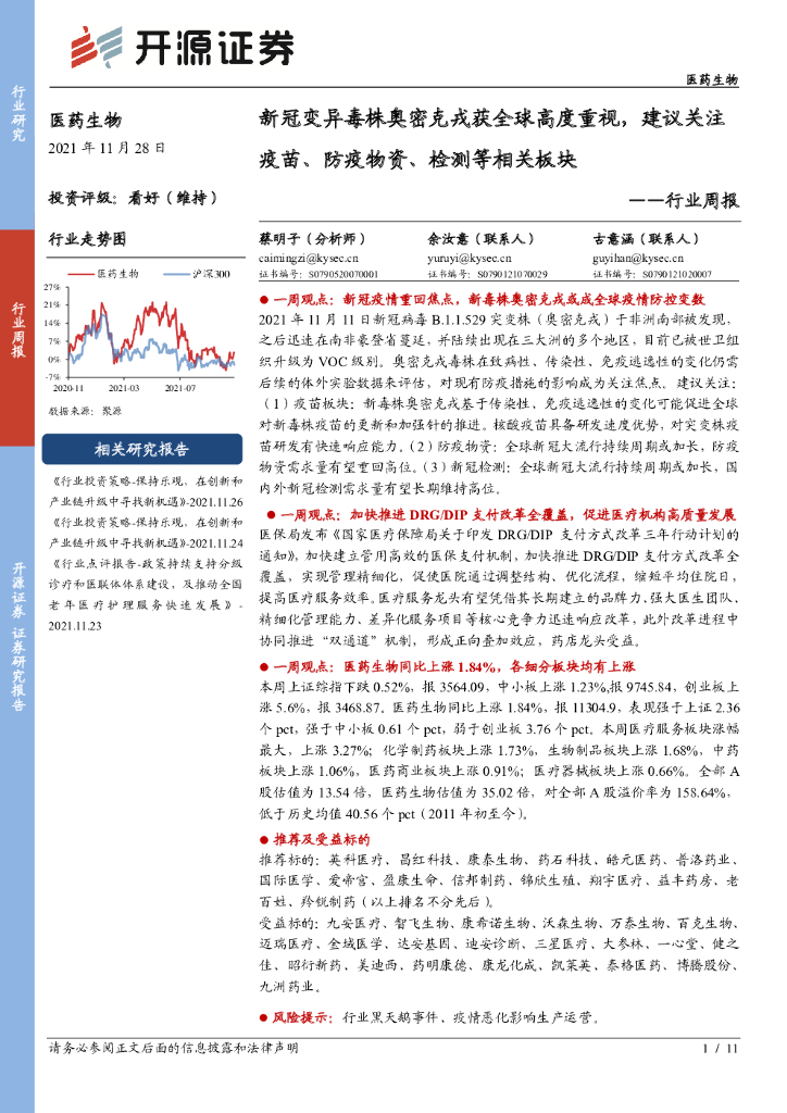 开源证券:医药生物行业周报:新冠变异毒株奥密克戎获全球高度重视,建议关注疫苗、防疫物资、检测等相关板块.pdf