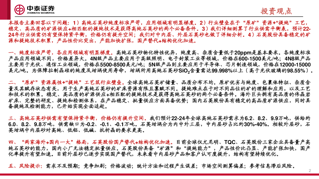 中泰证券:高纯石英砂行业深度:详析壁垒、供需和格局.pdf