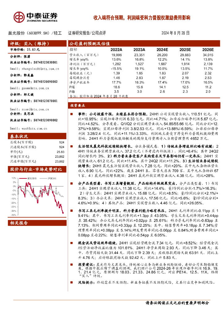 中泰证券:晨光股份(603899)-收入端符合预期,利润端受科力普股权激励费用影响.pdf