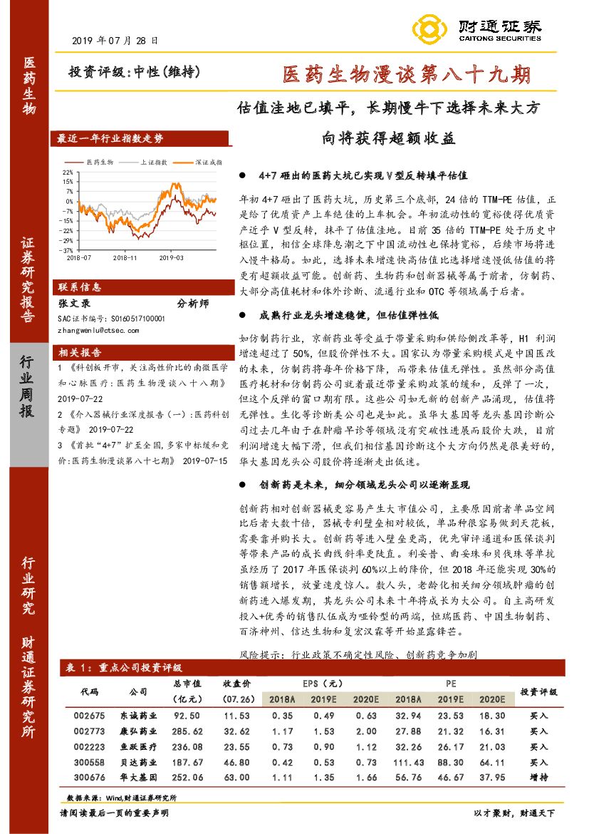 财通证券:医药生物漫谈第八十九期:估值洼地已填平,长期慢牛下选择未来大方向将获得超额收益.pdf