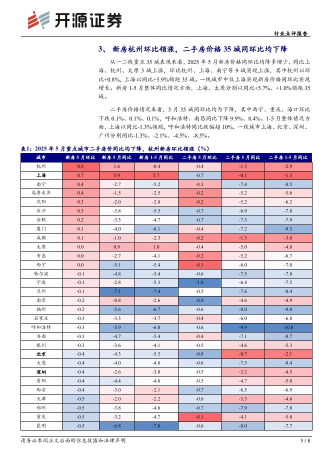 开源证券:房地产行业点评报告:新房杭州环比领涨,二手房价同比降幅缩小.pdf