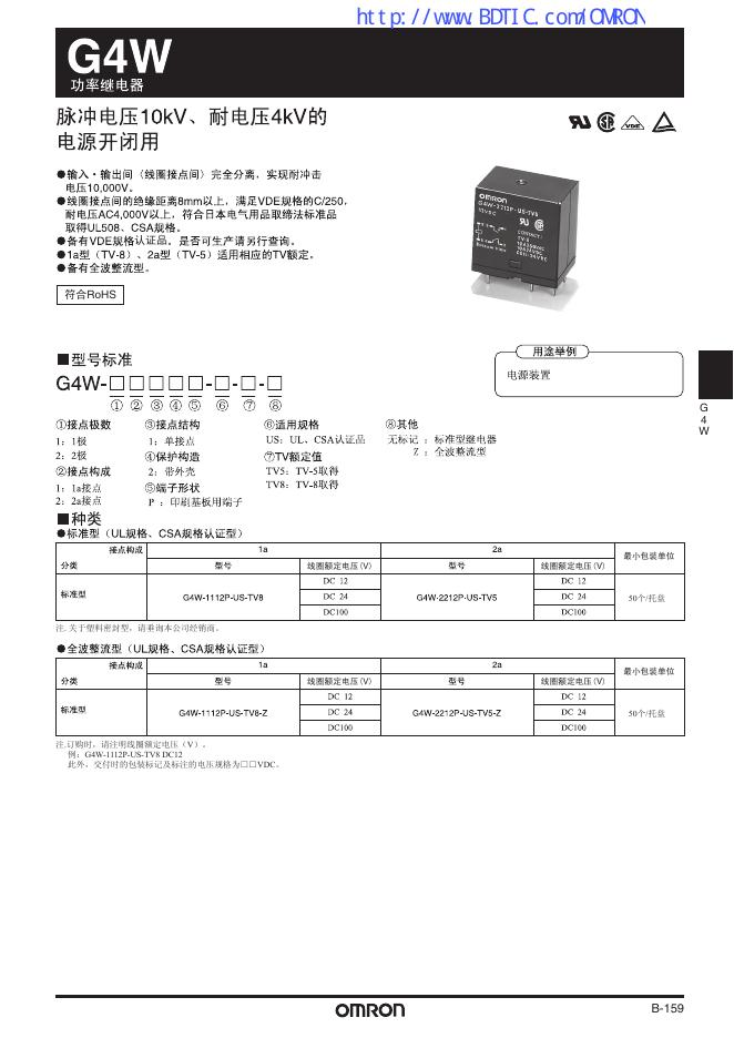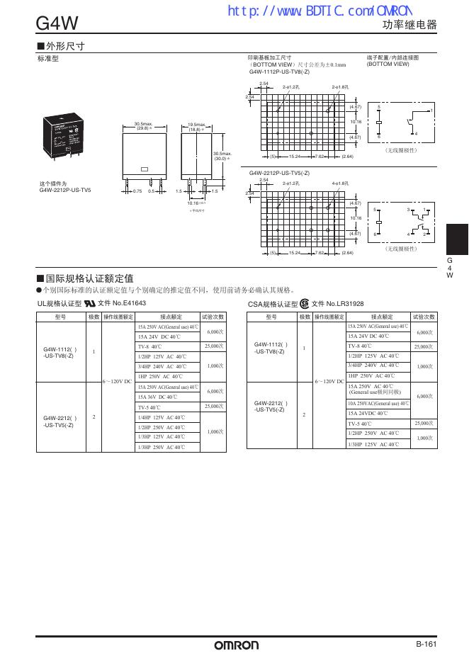 omron G4W功率继电器 数据手册.pdf