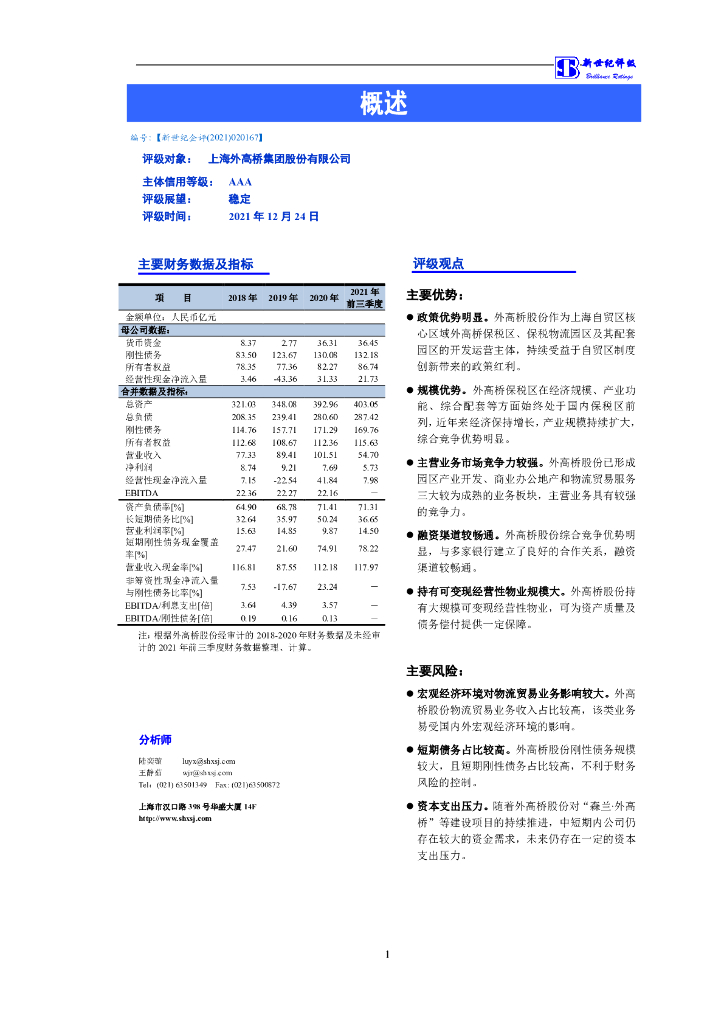 新世纪:上海外高桥集团股份有限公司2022年度第一期短期融资券主体信用评级报告.pdf