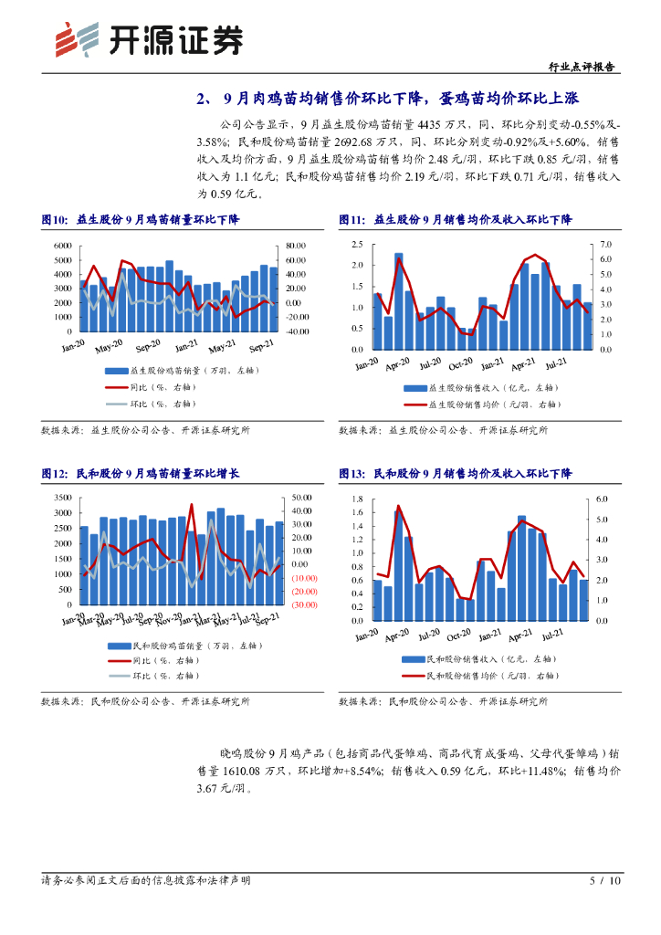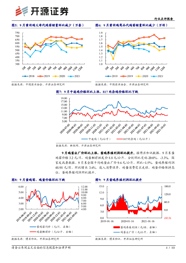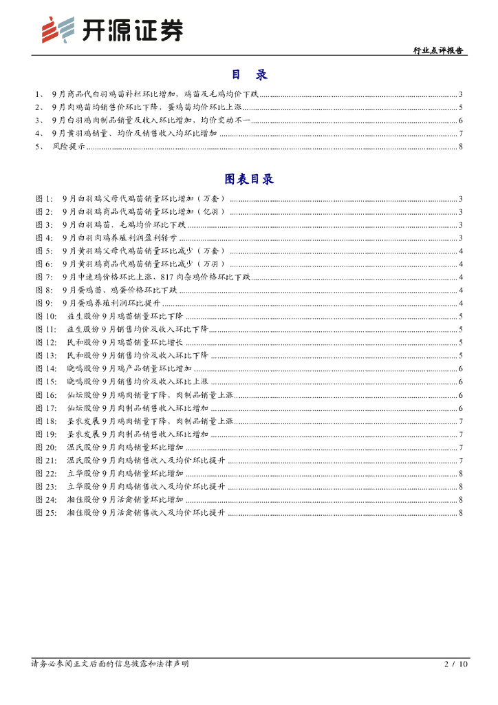 开源证券:农林牧渔行业点评报告:9月白羽鸡苗补栏维持高位,鸡苗及毛鸡均价下跌.pdf