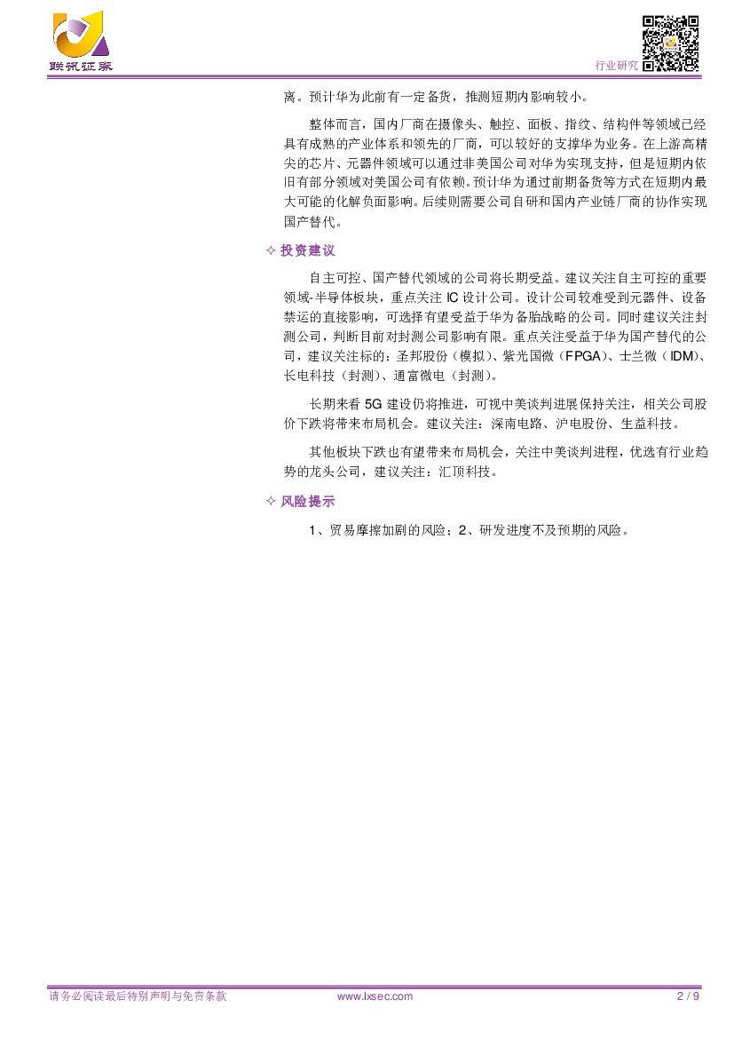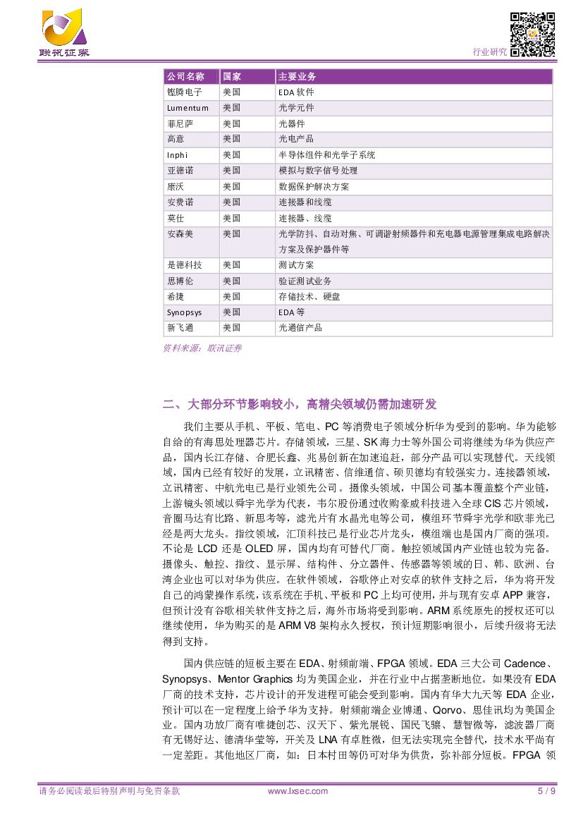联讯证券:【联讯电子行业点评】华为供应链:大部分环节影响较小,高精尖领域替代加速.pdf