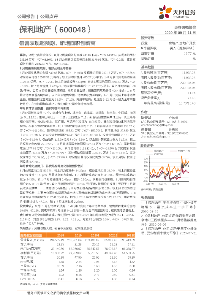 天风证券:保利地产(600048)-销售表现超预期、新增面积创新高.pdf