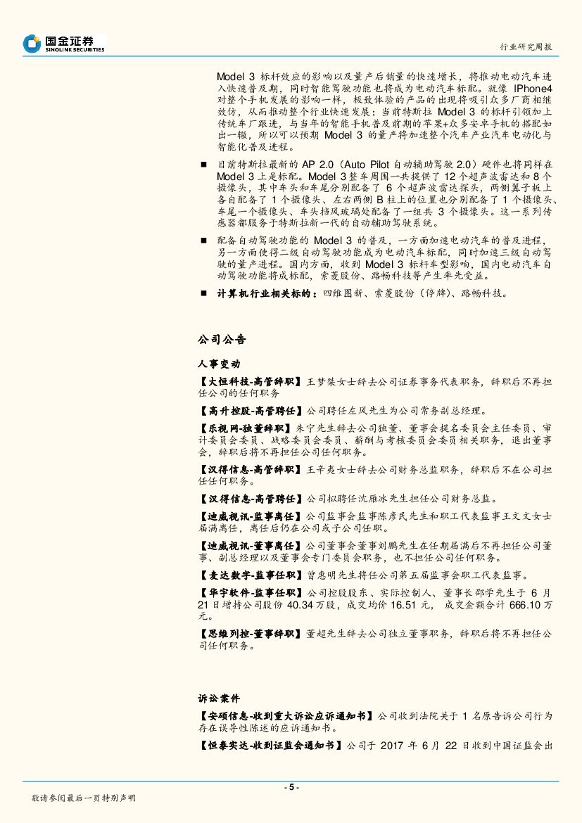 国金证券:国金计算机行业周报第9期:特斯拉Model3量产在即,加速自动驾驶普及进程.pdf