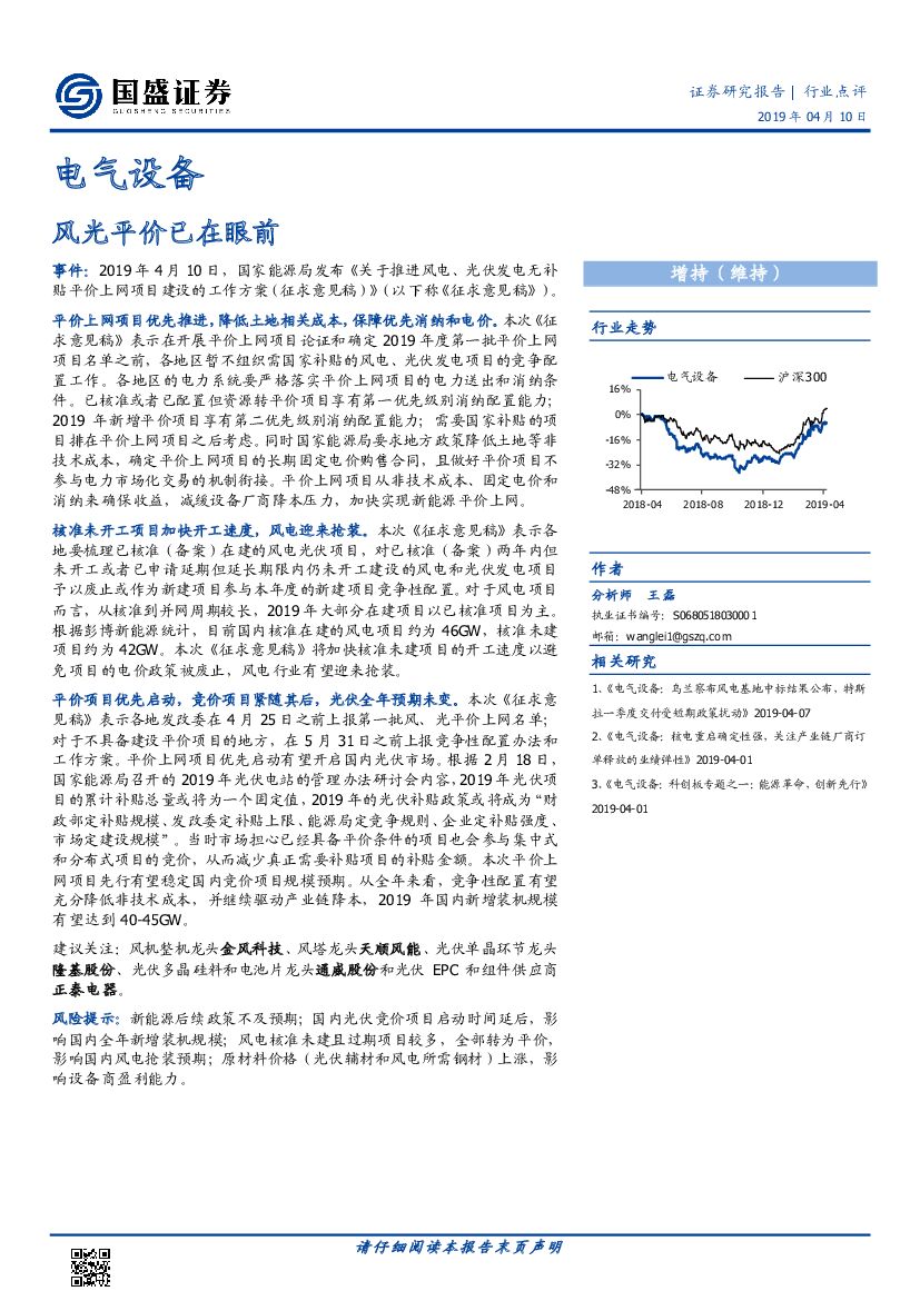 国盛证券:电气设备行业点评:风光平价已在眼前.pdf