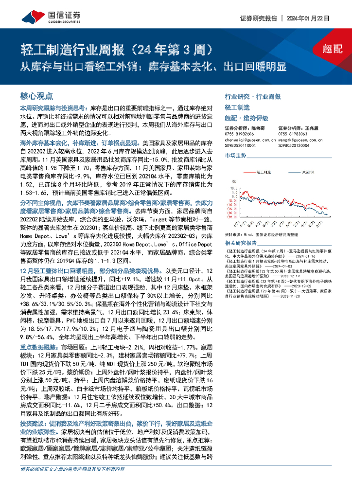 国信证券:轻工制造行业周报(24年第3周):从库存与出口看轻工外销:库存基本去化、出口回暖明显.pdf