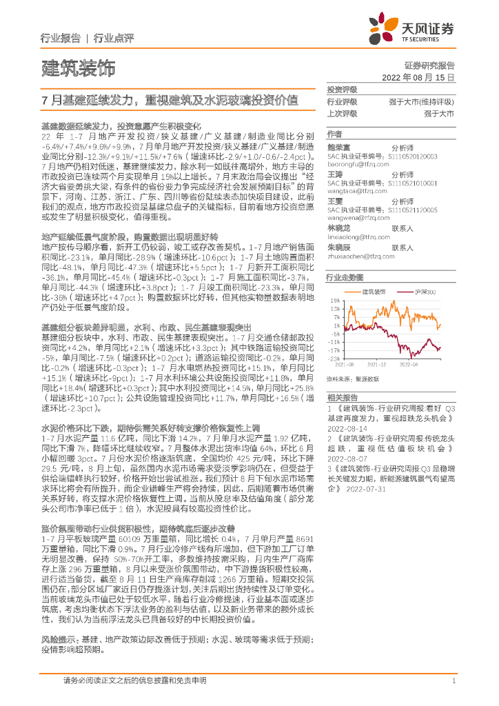 天风证券:建筑装饰行业点评:7月基建延续发力,重视建筑及水泥玻璃投资价值.pdf
