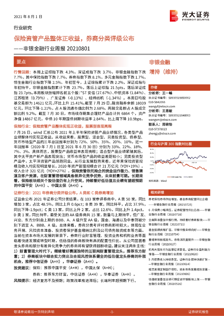 光大证券:非银金融行业周报:保险资管产品整体正收益,券商分类评级公布.pdf