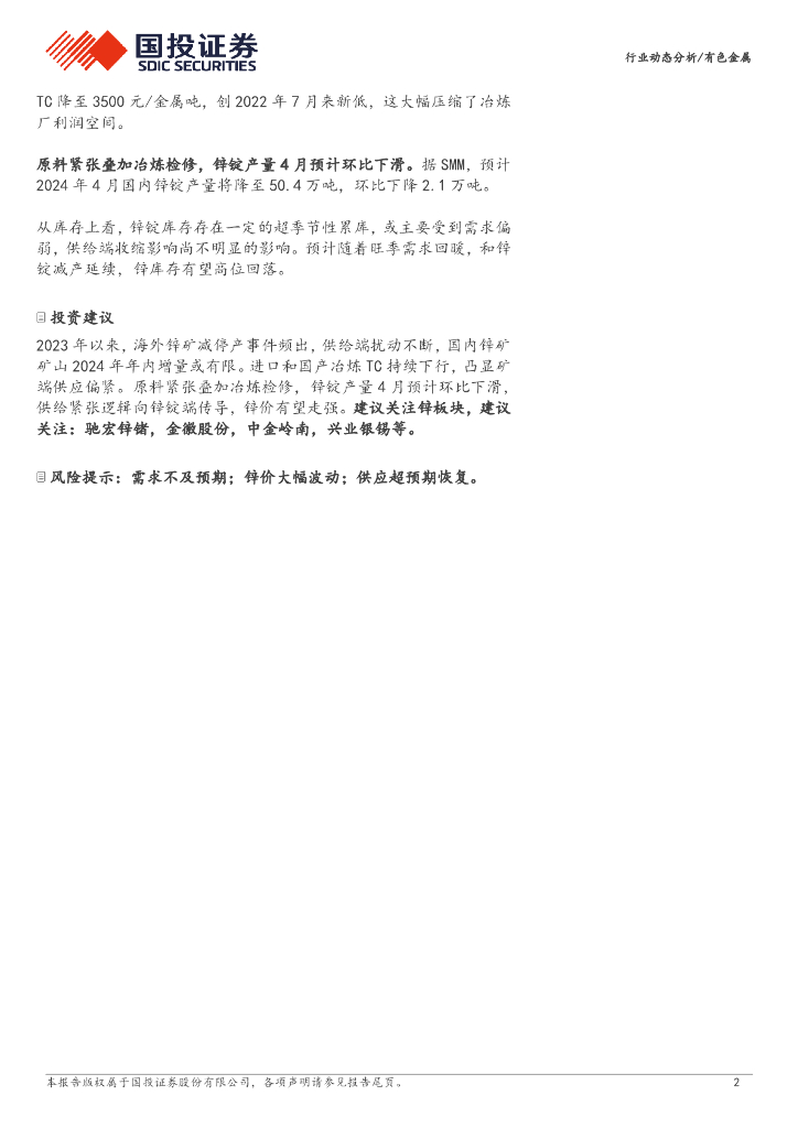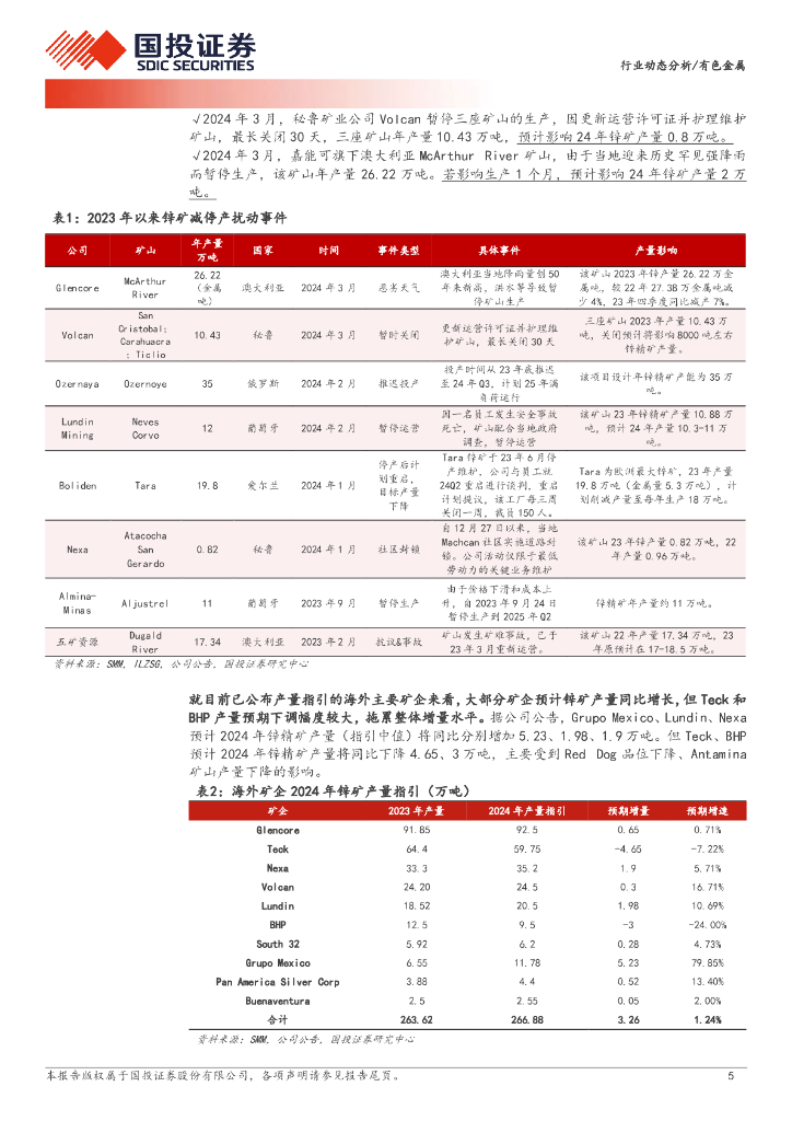 国投证券:有色金属:锌矿生产扰动不断,低TC下关注锌供应逻辑演绎.pdf