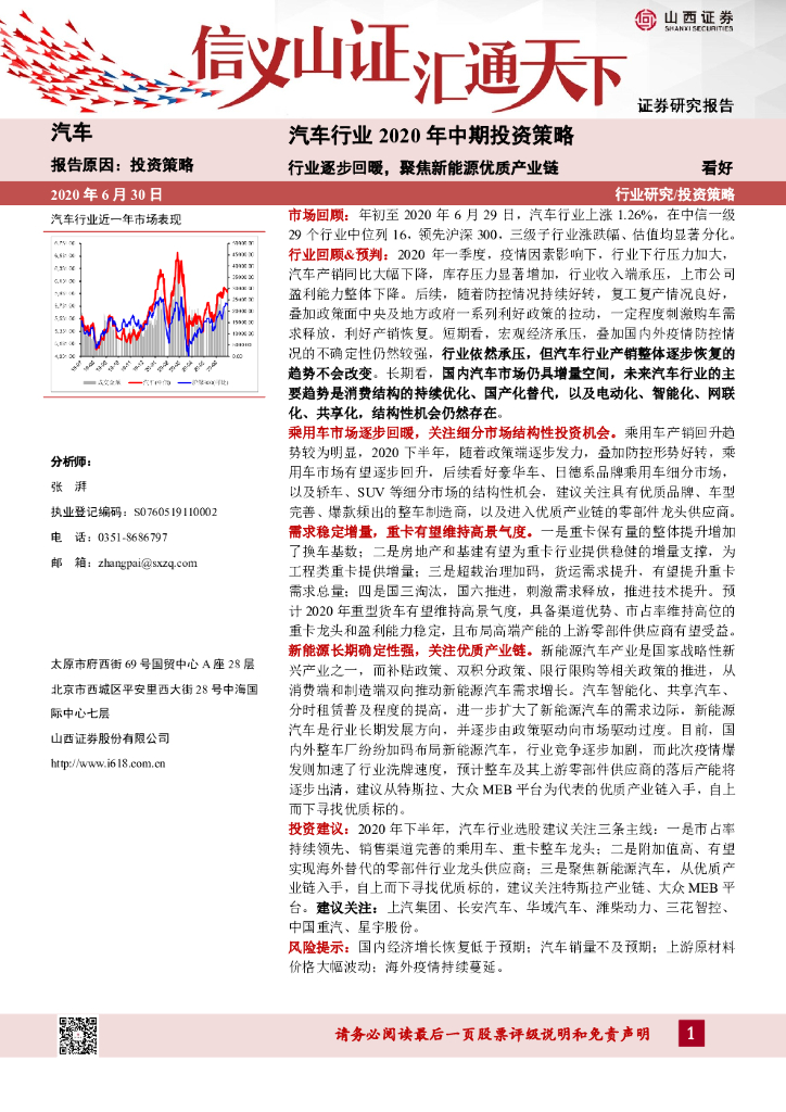 山西证券:汽车行业2020年中期投资策略:行业逐步回暖,聚焦新能源优质产业链.pdf