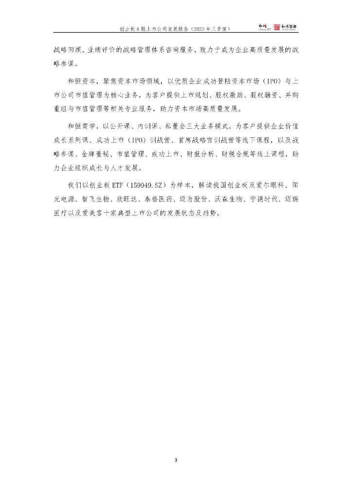和恒咨询:创业板A股上市公司发展报告(2022年三季报).pdf
