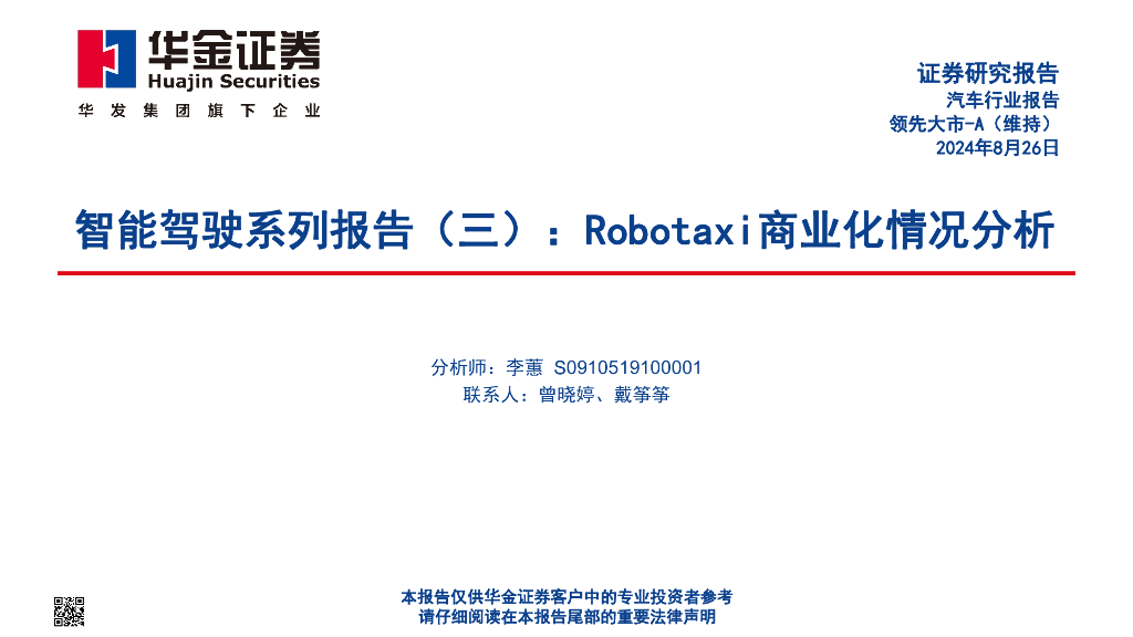 华金证券:智能驾驶系列报告(三):Robotaxi商业化情况分析.pdf