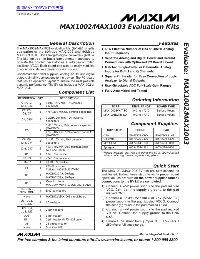MAXIM MAX1002/MAX1003 Evaluation Kits 数据手册.pdf