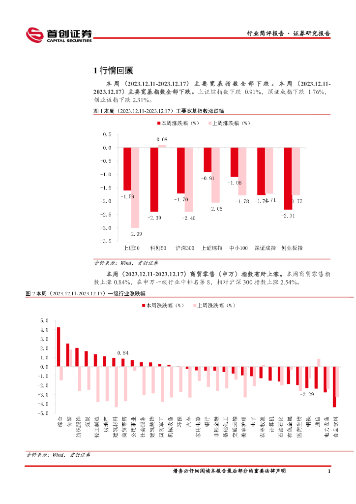 首创证券:商贸零售行业周报:社零持续恢复,建议关注同环比上升较多品种.pdf