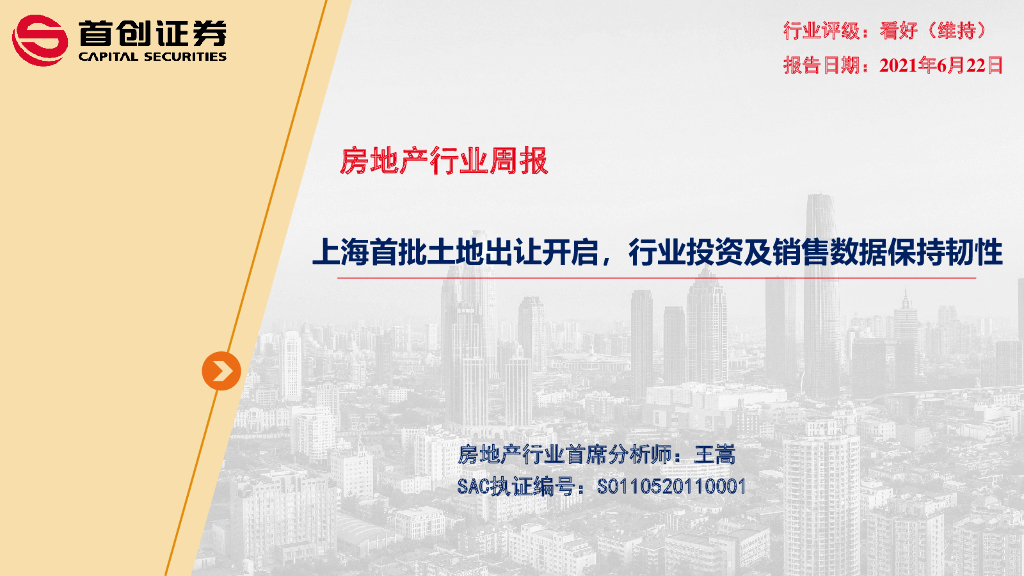 首创证券:房地产行业周报:上海首批土地出让开启,行业投资及销售数据保持韧性.pdf