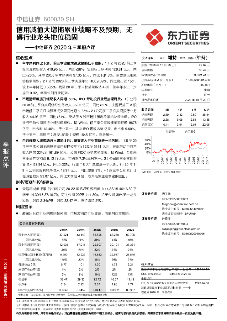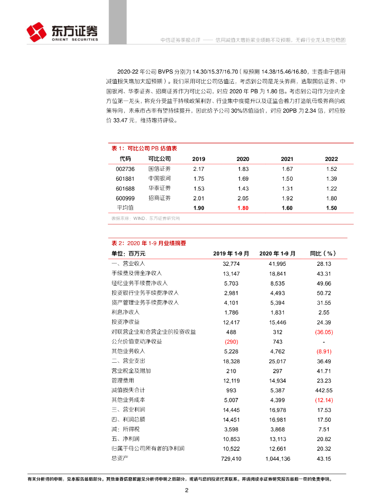 东方证券:中信证券2020年三季报点评:信用减值大增拖累业绩略不及预期,无碍行业龙头地位稳固.pdf