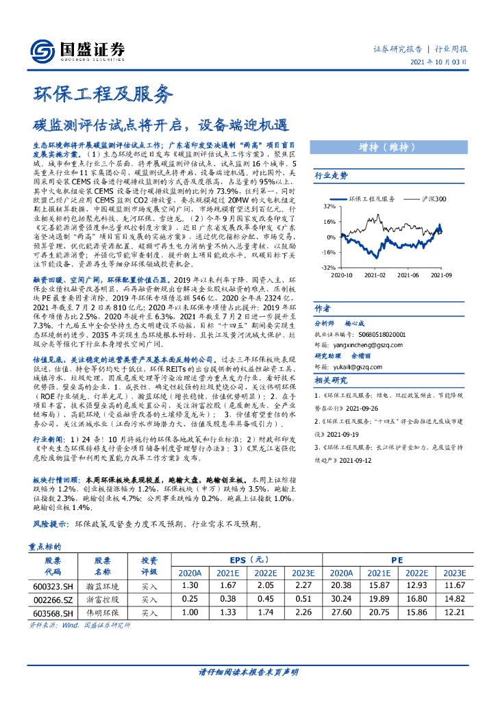 国盛证券:环保工程及服务行业周报:碳监测评估试点将开启,设备端迎机遇.pdf