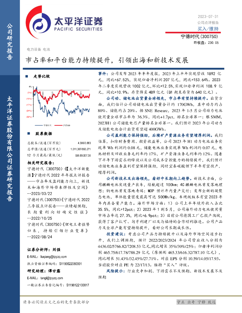 太平洋证券:宁德时代(300750)-市占率和平台能力持续提升,引领出海和新技术发展.pdf