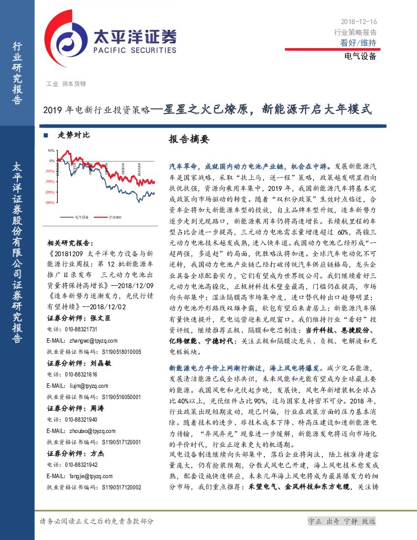 太平洋证券:2019年电新行业投资策略:星星之火已燎原,新能源开启大年模式.pdf