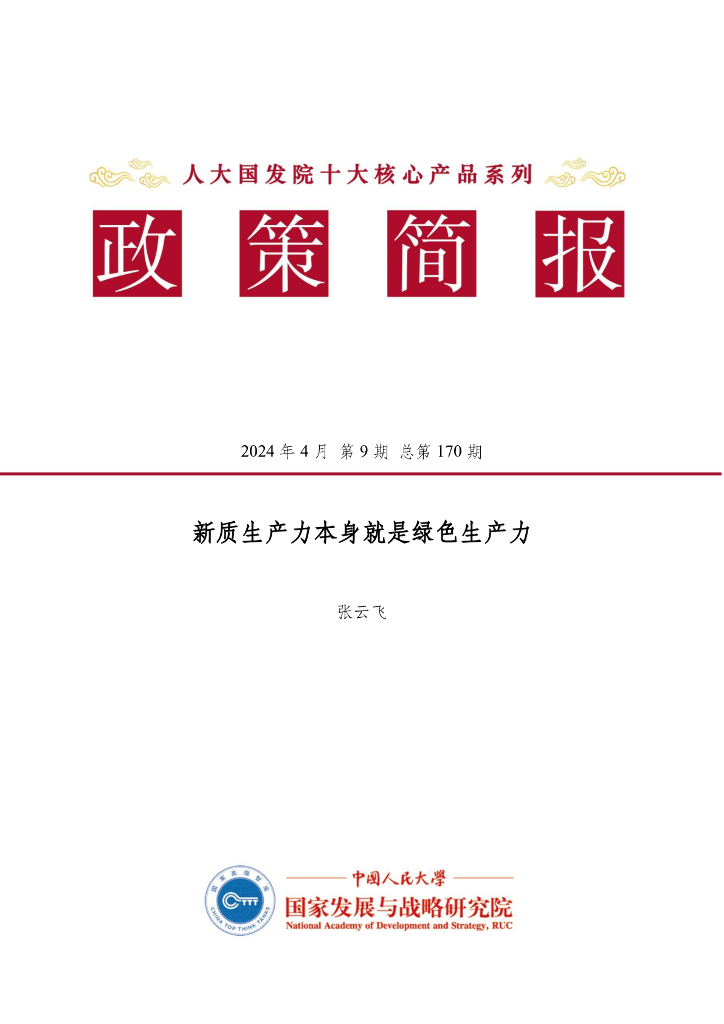 人大国发院政策简报第一百七十期:新质生产力本身就是绿色生产力.pdf