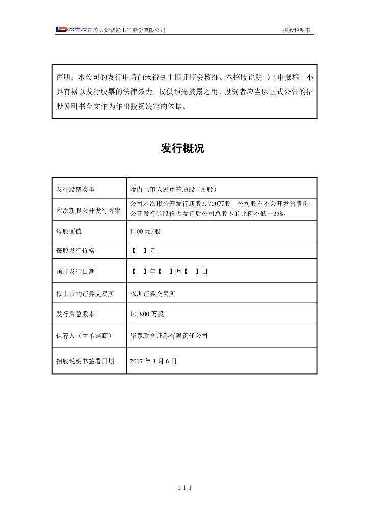 江苏大烨智能电气股份有限公司深交所创业板IPO上市招股说明书.pdf