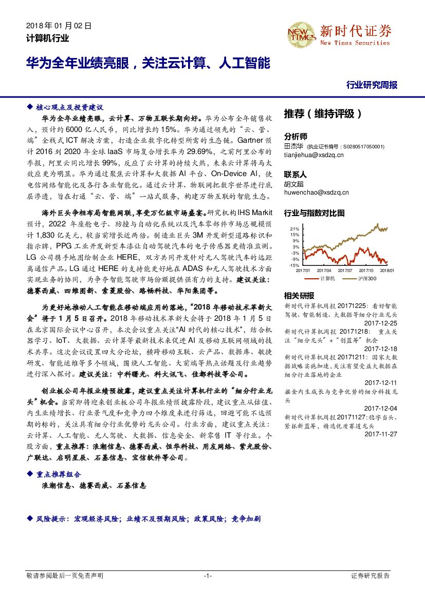 新时代证券:计算机行业研究周报:华为全年业绩亮眼,关注云计算、人工智能.pdf