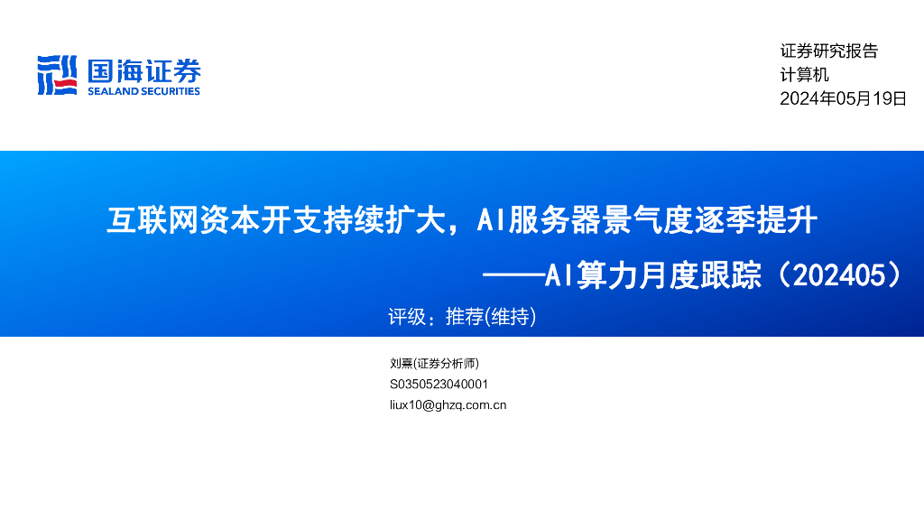 国海证券:AI算力月度跟踪(202405):互联网资本开支持续扩大,AI服务器景气度逐季提升.pdf