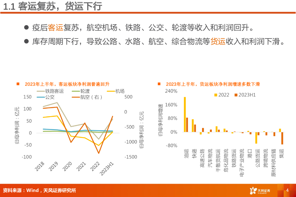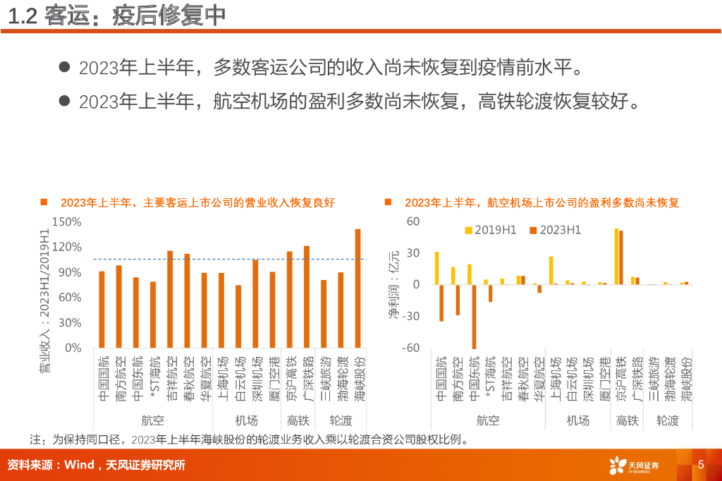 天风证券:交运2023年半年报分析:客运向上,货运向下.pdf