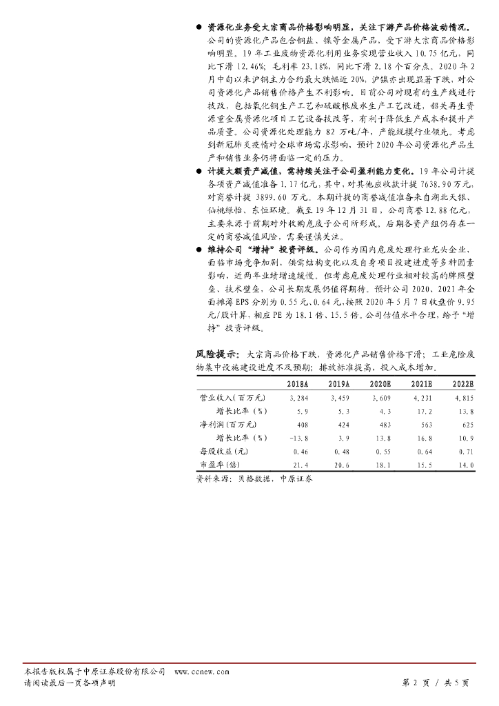 中原证券:东江环保(002672)-年报点评:业绩增长不及预期,关注下游客户复工复产和公司产能投放进度.pdf
