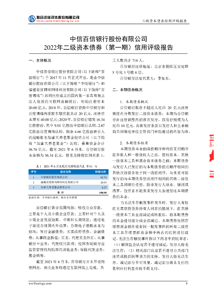 联合资信:中信百信银行股份有限公司2022年二级资本债券(第一期)信用评级报告及跟踪评级安排.pdf