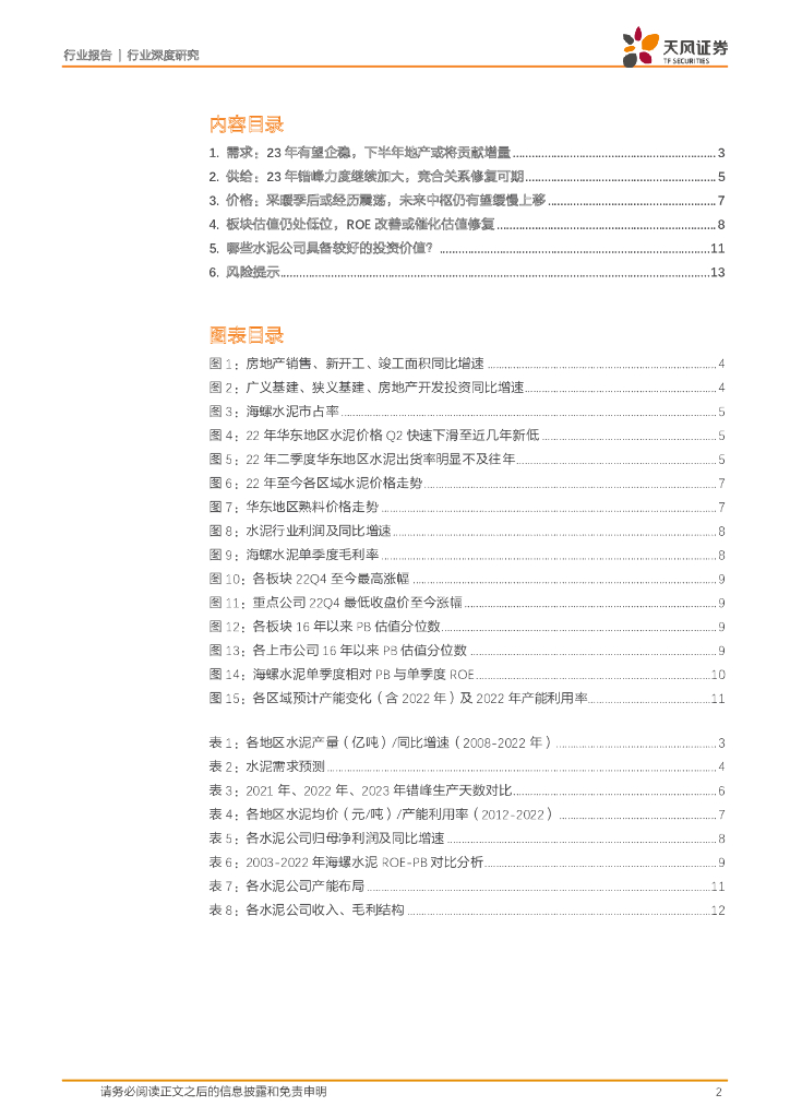 天风证券:水泥行业深度研究:Q1或是周期底部,ROE改善有望催化估值修复.pdf
