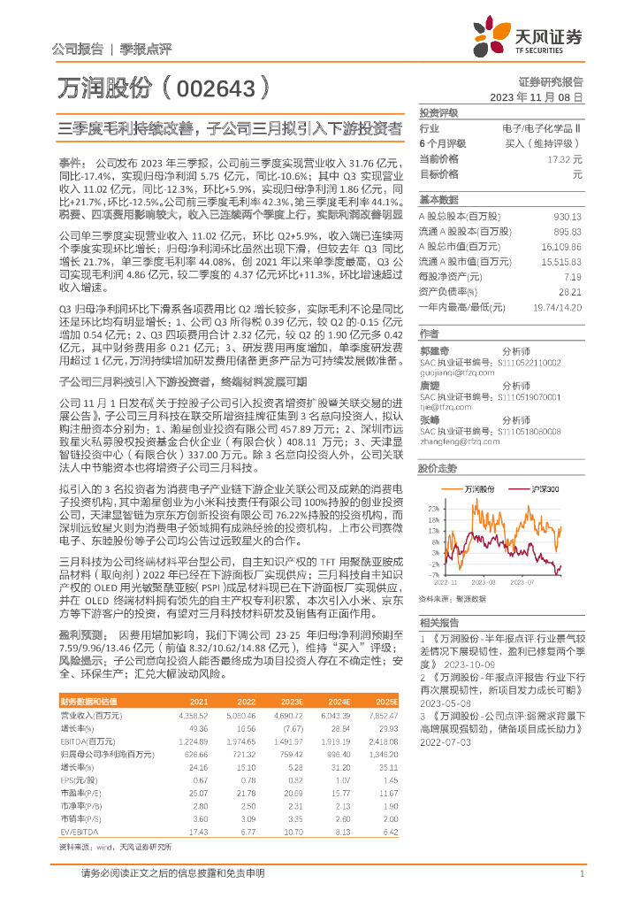 天风证券:万润股份(002643)-三季度毛利持续改善,子公司三月拟引入下游投资者.pdf