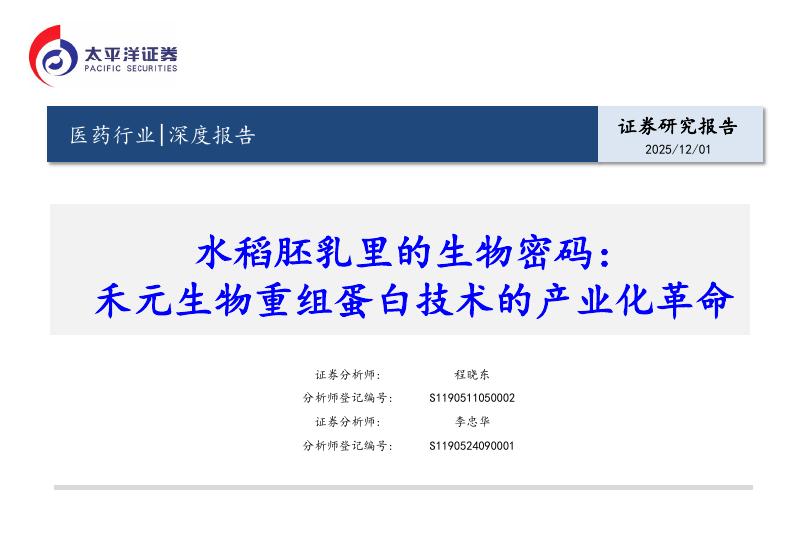 太平洋证券:医药行业水稻胚乳里的生物密码:禾元生物重组蛋白技术的产业化革命.pdf