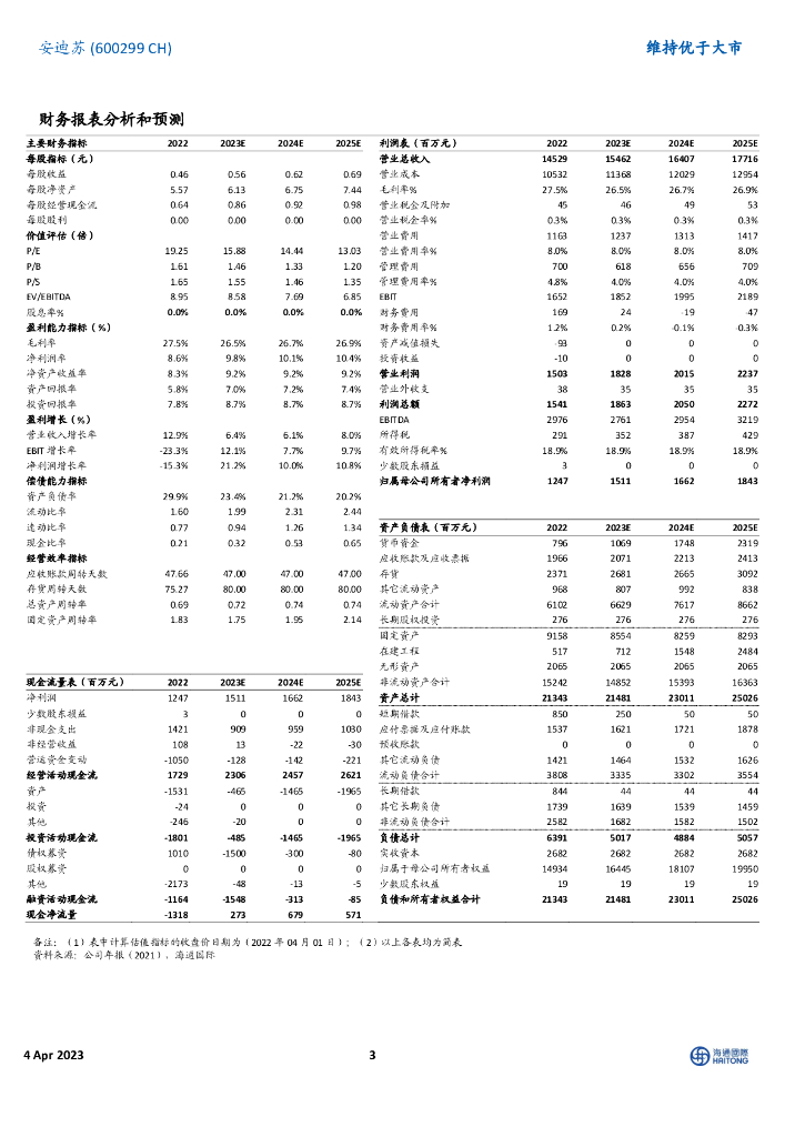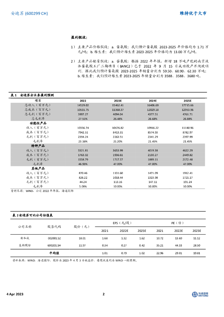 海通国际:安迪苏(600299)-22年归母净利润同比下降15.29%,看好南京二期项目投产带来高成长.pdf