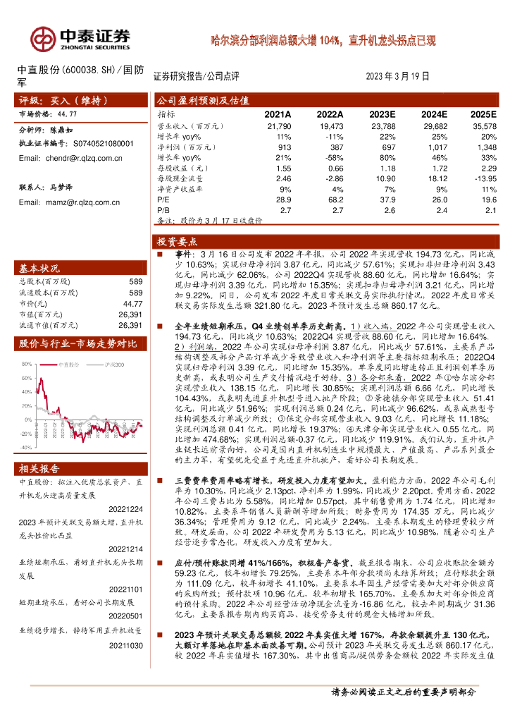 中泰证券:中直股份(600038)-哈尔滨分部利润总额大增104%,直升机龙头拐点已现.pdf