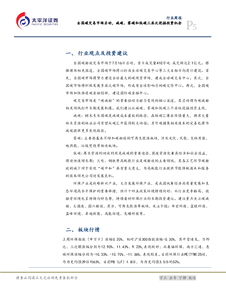 太平洋证券:公用事业行业周报:全国碳交易市场启动, 减碳、零碳和低碳三层次挖掘投资机会.pdf