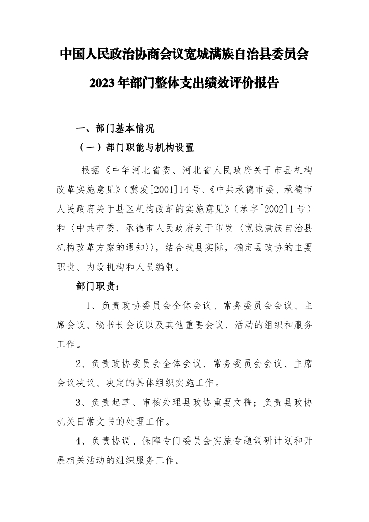 中国人民政治协商会议宽城满族自治县委员会2023年部门整体支出绩效评价报告.pdf