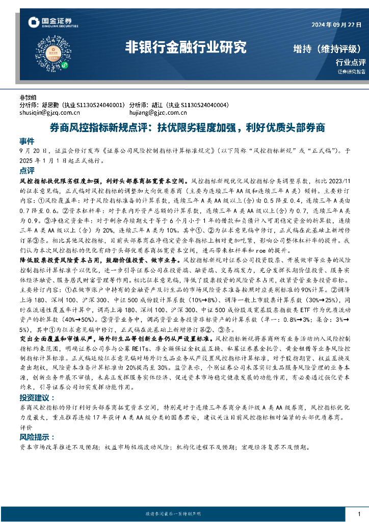 国金证券:劵商风控指标新规点评:扶优限务程度加强,利好优质头部券商.pdf
