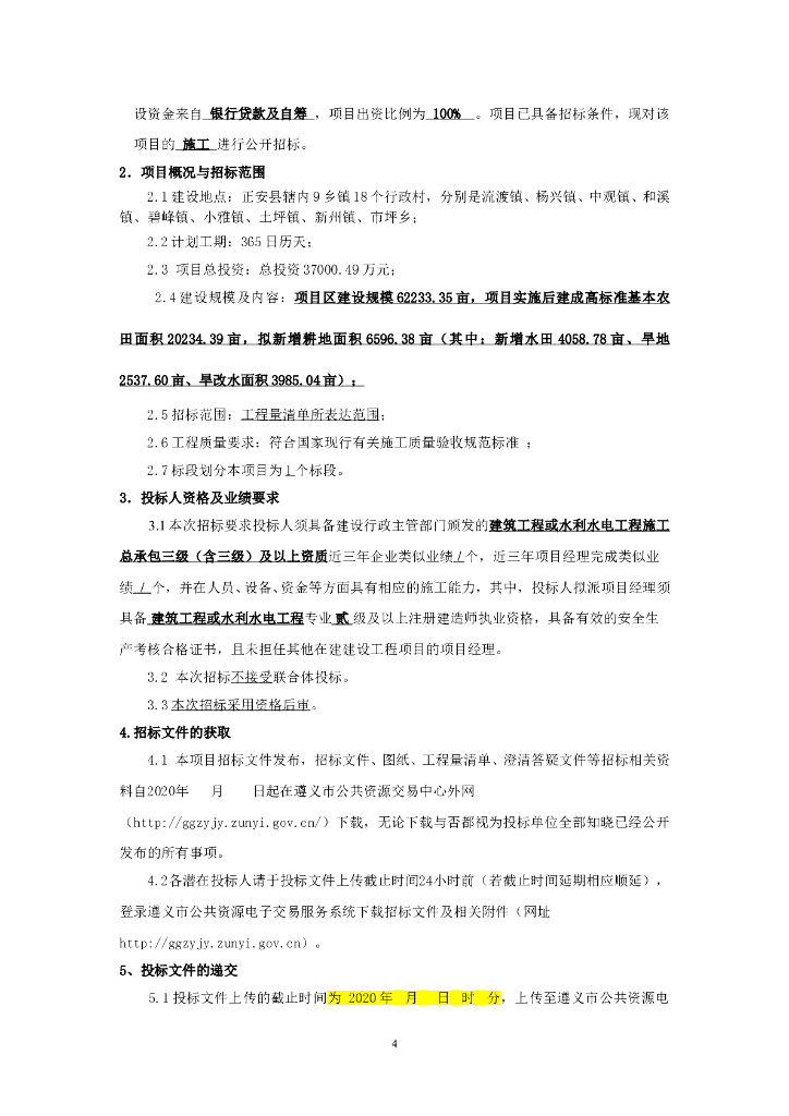[贵州]高标准农田建设项目招标文件2020.doc