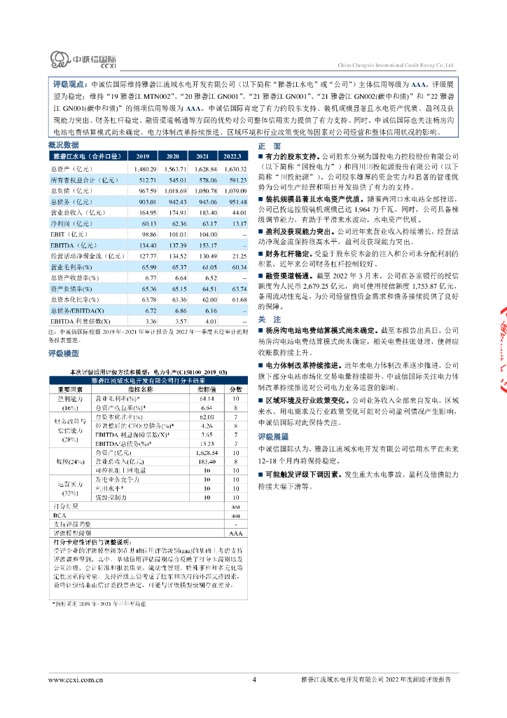 中诚信:雅砻江流域水电开发有限公司2022年度跟踪评级报告.pdf