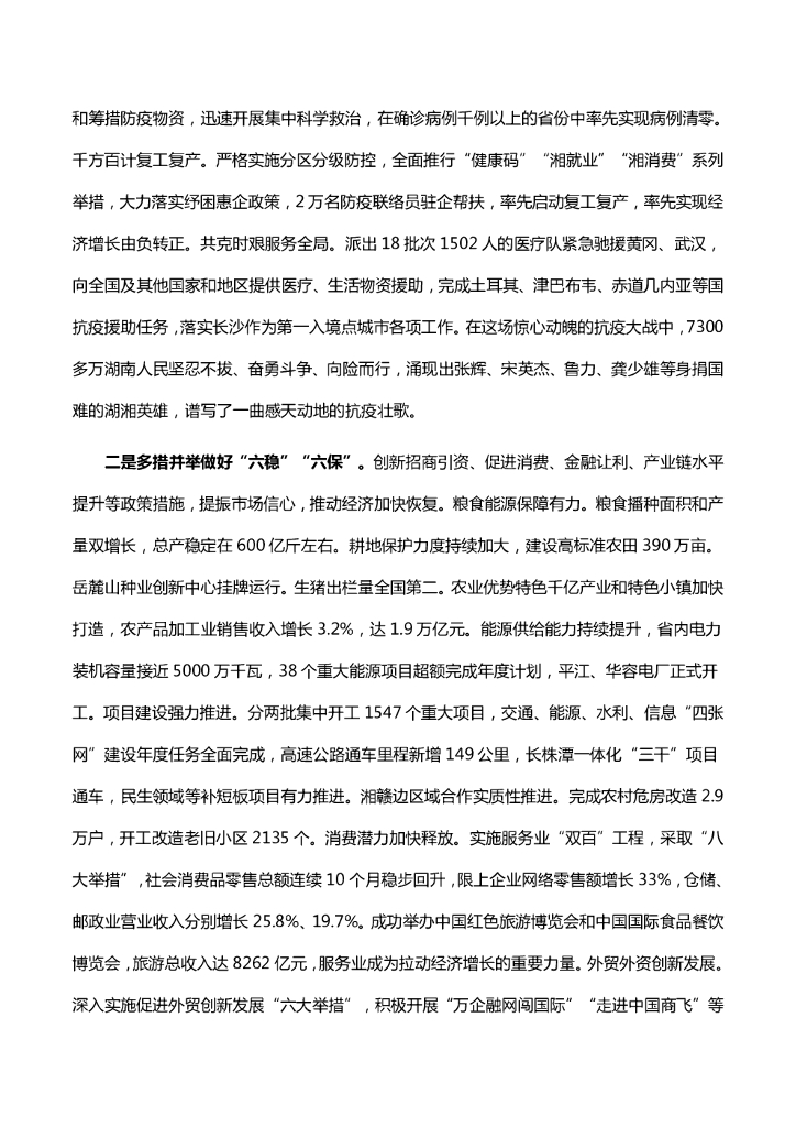 湖南省2021年政府工作报告(全文).pdf