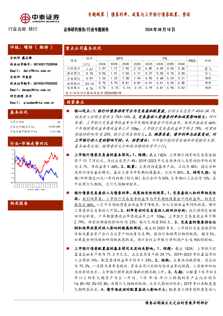 中泰证券:银行业专题测算|债券利率、政策与上市银行债券配置、营收.pdf