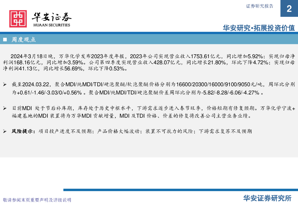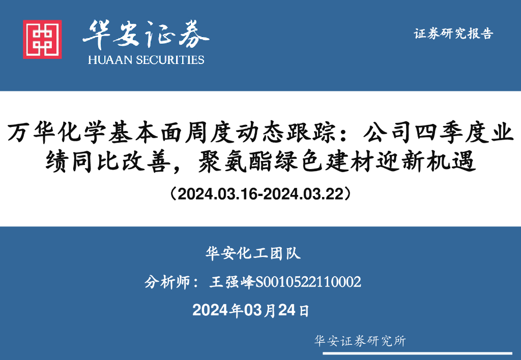 华安证券:万华化学基本面周度动态跟踪:公司四季度业绩同比改善,聚氨酯绿色建材迎新机遇.pdf