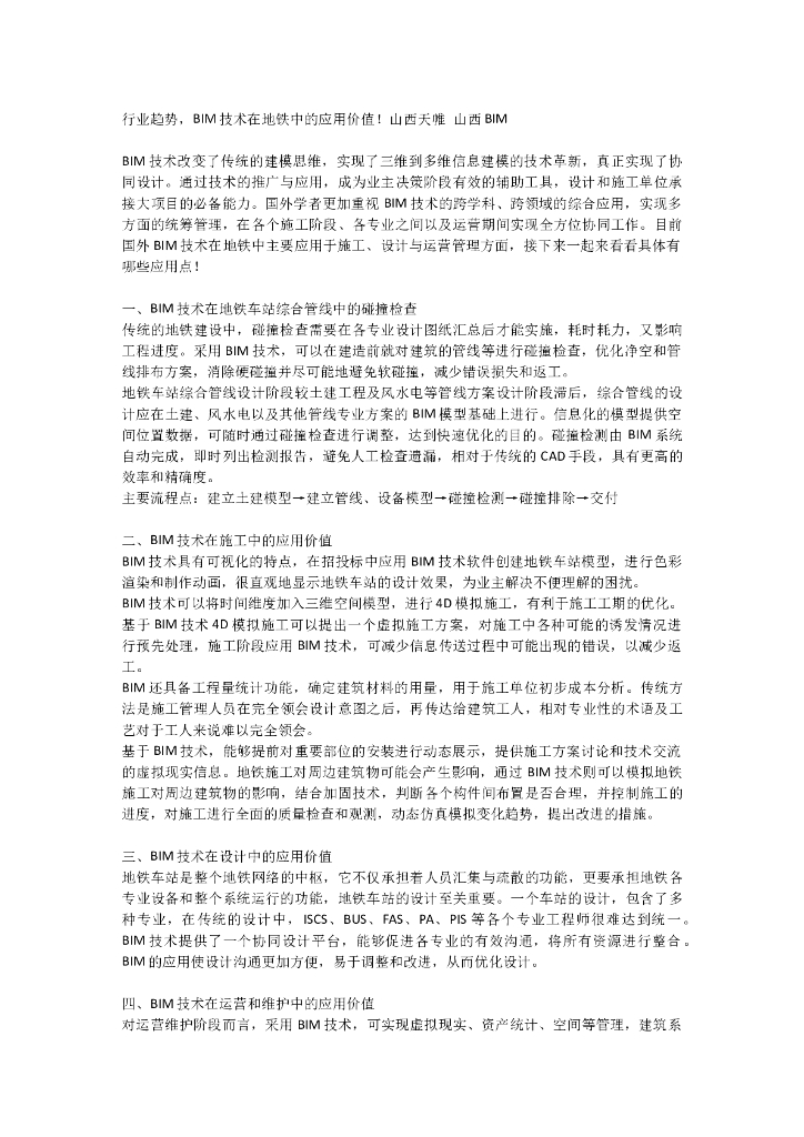 行业趋势,BIM技术在地铁中的应用价值浅谈.doc