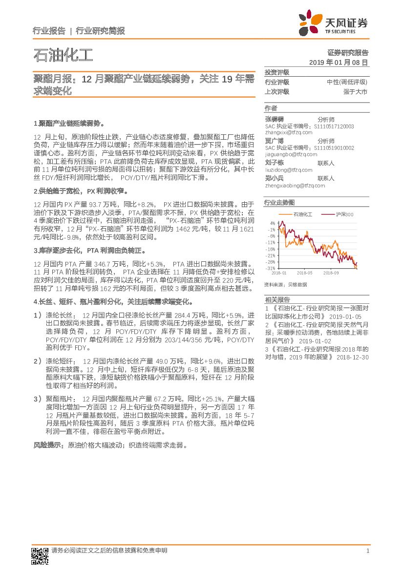 天风证券:石油化工:聚酯月报:12月聚酯产业链延续弱势,关注19年需求端变化.pdf
