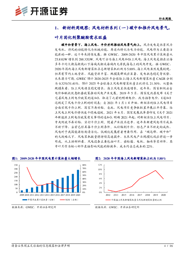 开源证券:新材料行业周报:风电材料系列一:碳中和推升风电景气,叶片固化剂聚醚胺需求旺盛.pdf