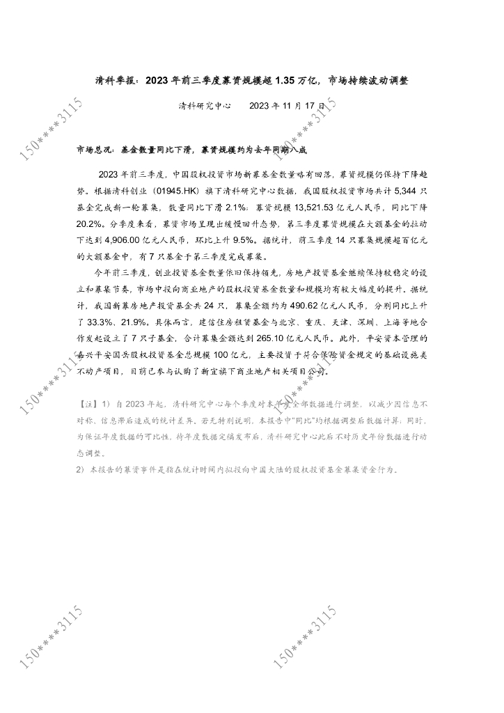 清科季报:2023年前三季度募资规模超1.35万亿,市场持续波动调整.pdf